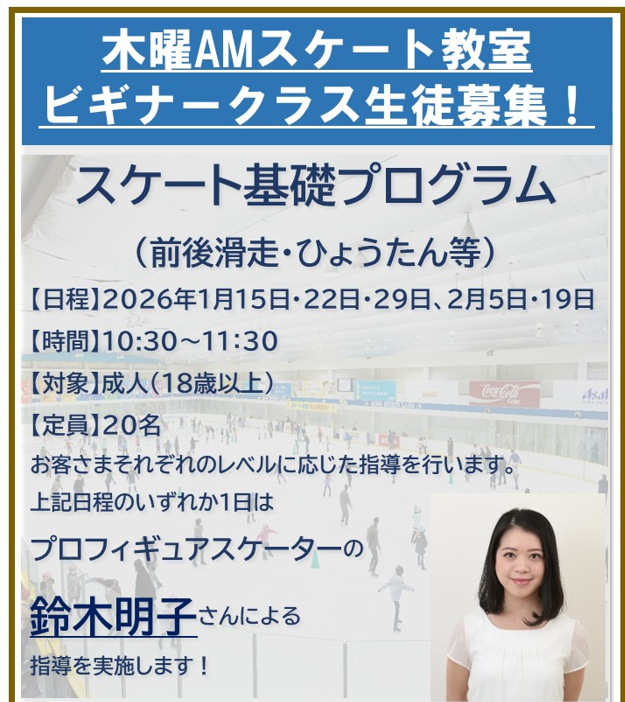 小学生限定(親子でも参加もOK)スケートワンポイント体験会