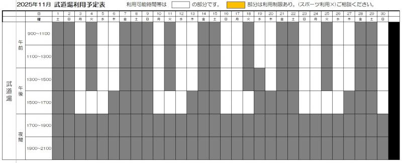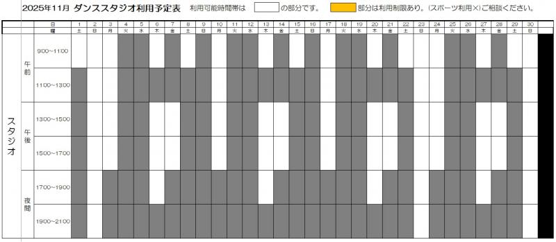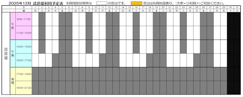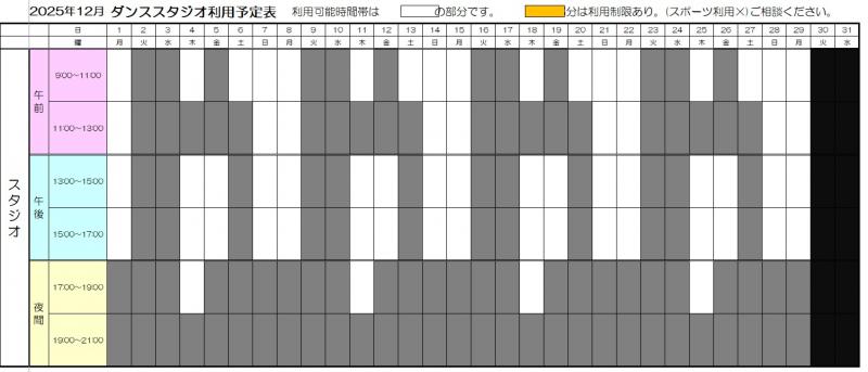 ◆体育館 武道場 ダンススタジオ◆ 25年11月12月のご利用について