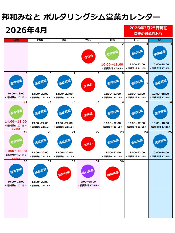 4月、3月の営業カレンダーのご案内です。