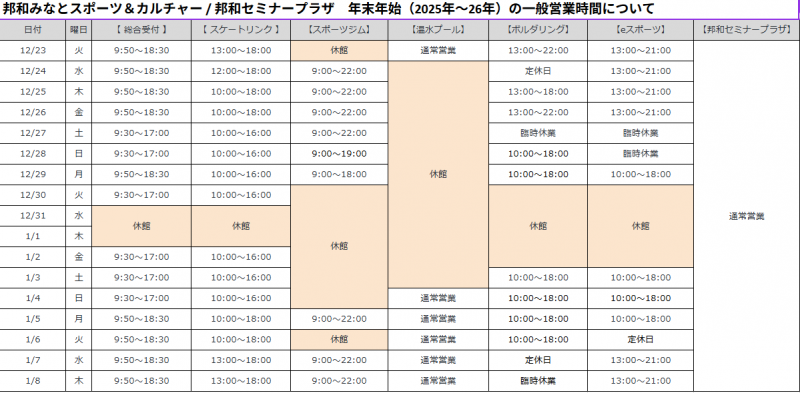 いつも邦和みなとスポーツ&カルチャーをご利⽤いただき、誠にありがとうございます。