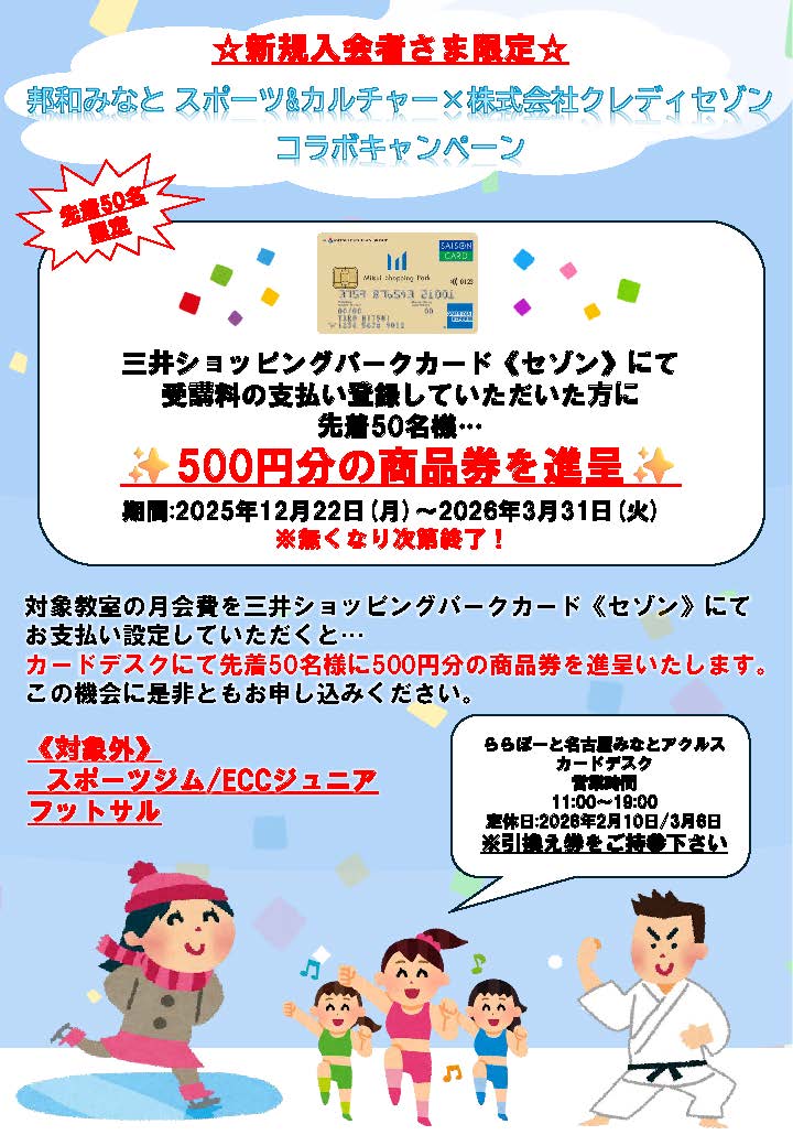 新規入会×三井ショッピングパークカード《セゾン》で商品券をプレゼント!