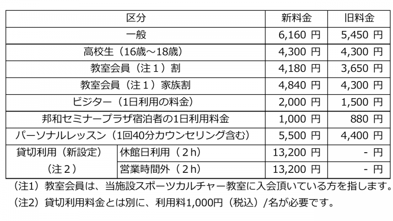 平素は邦和みなと スポーツ&カルチャーをご利用いただき、誠にありがとうございます。
